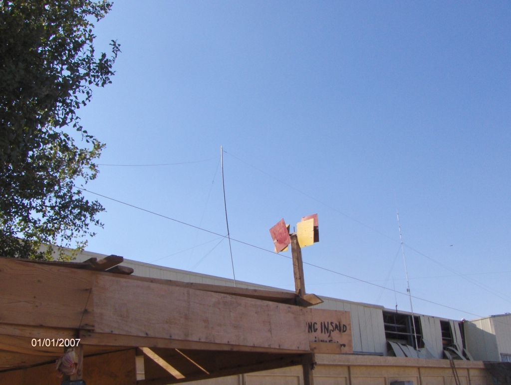 Następnego dnia zamocowałem beverage 89 m (wykonany także z kabla telefonicznego a ukierunkowany na Japonię). Pierwsze 20 m anteny umieszczone były ok. 0,5 m nad ziemią , pozostała część spoczywała na gruncie.Była bardzo przydatna przy otwarciach propagacyjnych w kierunku Japonii w pasmach 160 m, 80 m.Z moich obserwacji wynikało że w zależności od kąta pod jakim docierał sygnał , raz lepsza okazywała się K9AY a innym razem beverage.