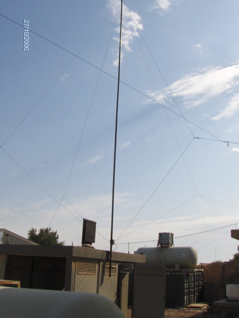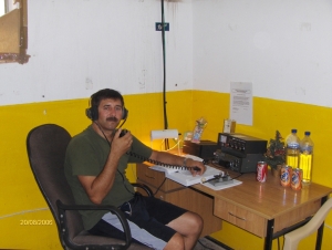 Ostatecznie w pierwszych dniach sierpnia dzięki wyrozumiałości przełożonych otrzymałem zgodę na prace radioamatorską , ale dalej nie miałem odpowiedniego pomieszczenia .Dzięki uprzejmości jednego z kolegów który wykazał daleko idące zrozumienie dla naszego hobby, dostałem kącik w pomieszczeniu siłowni . Pomieszczenie było zamykane, posiadało klimatyzacje, trochę na uboczu bazy i co najważniejsze w pobliżu były względnie dobre warunki na montaż anten . Oczywiście nie można tego porównywać do typowych ekspedycji dx-owych , które dysponują sporym terenem i rozwijają dowolne anteny .