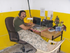Pragnę kolegom uzmysłowić fakt, że mój pobyt w tym kraju często był zakłócany przez liczne ostrzały możdzierzowe i rakietowe bazy co nie ułatwiało mi życia i powodowało szereg stresów. Natomiast praca na pasmach amatorskich była wspaniałym antidotum.