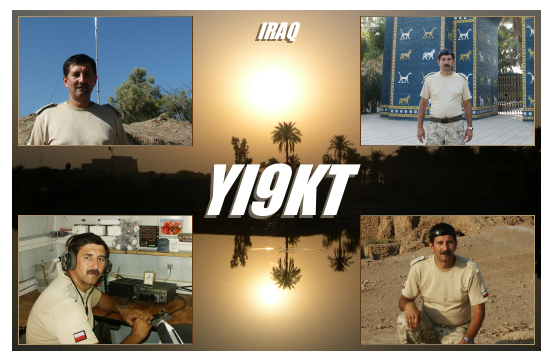 Kilka dni po przybyciu rozpocząłem starania o uzyskanie zgody od władz wojskowych na pracę radioamatorską z terenu bazy Diwaniyah. Licencję uprawniającą do pracy z terenu Iraku pod znakiem YI9KT posiadałem już wcześniej, ponieważ została wydana w maju 2004 roku na okres 5 lat. W międzyczasie w chwilach wolnych rozglądałem się za pomieszczeniem , gdzie mógłbym umieścić swoją stacje. Dużo pomagał mi Rajmund SP1RKB który przebywał już w Iraku od ponad półtora miesiąca i był aktywny pod znakiem YI9RKB. Obaj mieliśmy dużo wcześniej kontakt telefoniczny, oraz e- mailowy .W poszukiwaniach napotkałem szereg trudności , bo obszar bazy jest niewielki nasycony różnymi urządzeniami elektronicznymi , co nie bardzo współgrało z działalnością radioamatorską , ponadto potrzeba trochę wolnego miejsca na rozwinięcie anten . Była to w moim przypadku chyba najtrudniejsza kwestia .