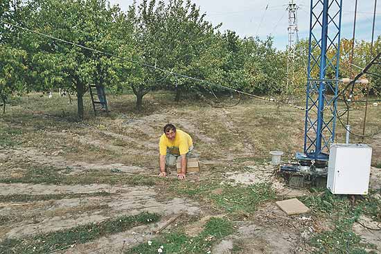 Aby antena funkcjonowała dobrze nie wystarczy poświęcenie jej przez przedstawiciela kościoła. Odwrotnie, stwarza to wyjątkowe luki w charakterystyce promieniowania anteny, która działa tylko na regiony objęte tym właśnie kościołem. Po to aby mieć dobry sygnał w innych rejonach trzeba odprawić selektywne modły. Na zdjęciu Jurek SP3GEM na kolanach zwrócony w odpowiednim kierunku przy swojej nowej antenie na 80 metrów. Po modłach zrobił 100 łączności ze stacjami HZ na 3.8 MHz z raportami 59.