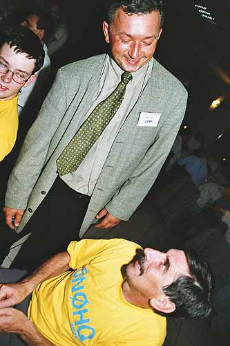Na skutek występujących rozbieżności pomiędzy zgłaszanymi a ostatecznymi wynikami w zawodach zostaną wprowadzone osobiste przesłuchania uczestników zawodów przez reprezentantów d/s sportowych we wszystkich krajach organizujących zawody. Nie wystarczą podpisane deklaracje i występowania tej samej stacji w logach innych uczestnikow. Reprezentanci organizatorów będą mieli prawo przeprowadzać wyrywkowe kontrole i przesłuchania w obecności świadków. Na zdjęciu przedstawiciel organizatora zawodów przepytuje kolegę Drzewieckiego na okoliczność zgłoszonego wyniku w ostatnich zawodach SP DX Contest.