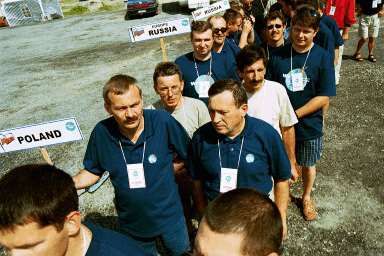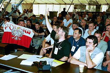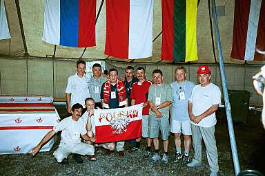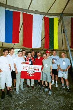 w środku polska ekipa: SP3RBR, trzyma szyld Poland, |
