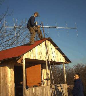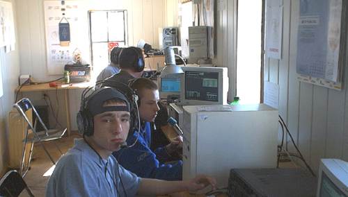 Podzieliliśmy obowiązki na poszczególne osoby. Mnie w udziale przypadła sieć komputerowa, oraz system anten ( 2 x 4 el. Yagi na 21 mhz, w tej chwili system rozwijany jest do 2 x po 6 el. Tnx Jurek SP3GEM ). Niestety dzięki wrodzonemu lękowi przestrzeni, wszystkie prace wysokościowe wykonują u nas koledzy Krzysztof SP4XQN, oraz Wojtek SQ4MP nazywani przez nas ekipą spider man-ów. To dzięki nim realizujemy nawet dość ekscentryczne pomysły, tu należą się im wyrazy szczerego podziwu i szacunku. Ich ekwilibrystyczne wyczyny na wysokościach rzędu 20 i więcej metrów przysparzają dodatkowych dreszczyków emocji. W ciągu tygodnia przed zawodami nie było dnia żeby ktoś nie pracował przy organizacji tej operacji. Często pracowaliśmy w grupach oddzielnie, ale bywały również momenty w których wszyscy spotykaliśmy się w trakcie prac.