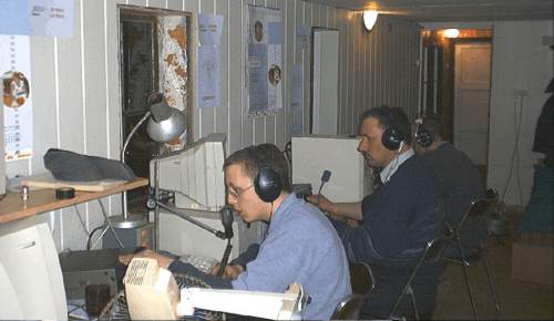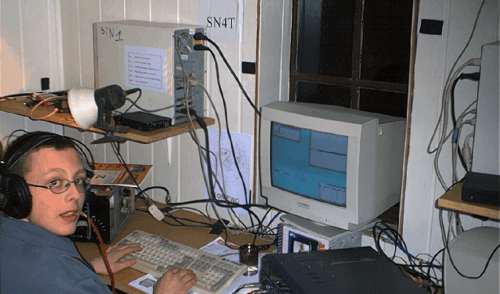 Pomieszczenie stacji, na pierszym planie : Marian SP4DTU,