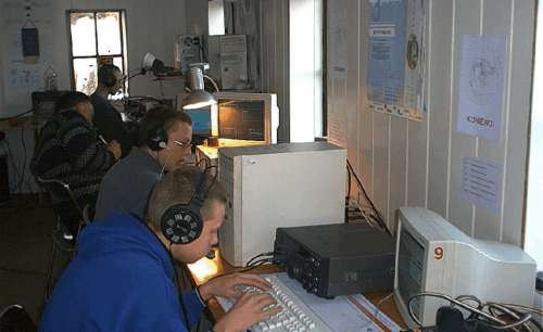 Zmieniamy się przy trx co około 2 godziny. Co 1 godzinę na dużej tablicy zapisywane są nasze wyniki, wraz z uwagami i komentarzami. Koledzy dyżurujący w kuchni uwijają się z kawą, herbatą itp.... Pierwsze 100, 200, 300 qso, pierwsza zmiana operatorów, na początku wszyscy są pod wrażeniem nikt nie odpoczywa.