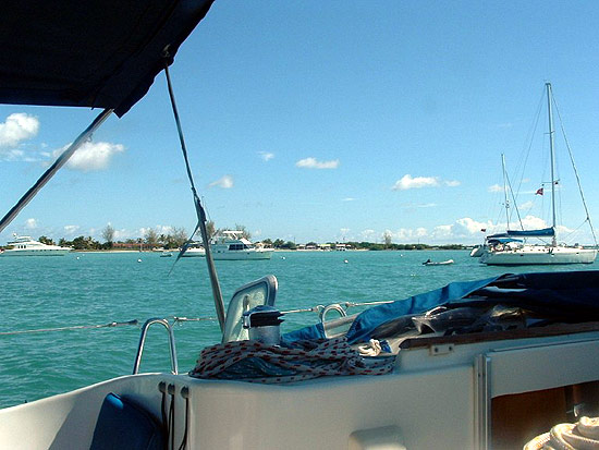 Nagle wydaje mi się, że coś widzę na horyzoncie. Tak - to są palmy na Anegada. Odbijamy na zachód, bo tam jest kilkumetrowa przerwa w rafie koralowej. GPS w użytku, córka z radiotelefonem na dziobie. Jest płytko. Głębokościomierz pokazuje tylko 3m. Jacht ma zanurzenie 1.8m.