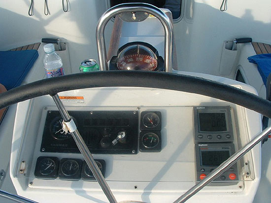 Ster jest coraz trudniej utrzymać. Jacht "chce" się ustawić bokiem, ja walczę bo wiadomo, że wtedy leżymy. Jestem tylko w spodenkach, krople deszczu biją w plecy jak igły. Jest nas pięć osób na jachcie, zaczynam czuć się odpowiedzialny za wszystkich w całym tego słowa znaczeniu. Fale już są nie tylko bardzo duże, ale z grzywaczami. Na kanale 16 VHF inny jacht (warty ponad $200 tysięcy) woła o pomoc - niestety tonie z sześcioma osobami na pokładzie (później się dowiedzieliśmy, że wszystkie sześć osób uratowano). Znajomi w Arizonie, którzy dowiedzieli się w dzienniku, że jacht z Morings zatonął a na nim było cztery trochę starsze i jedna młoda osoba - byli przekonani, że to my bo taka była załoga na naszym jachcie.