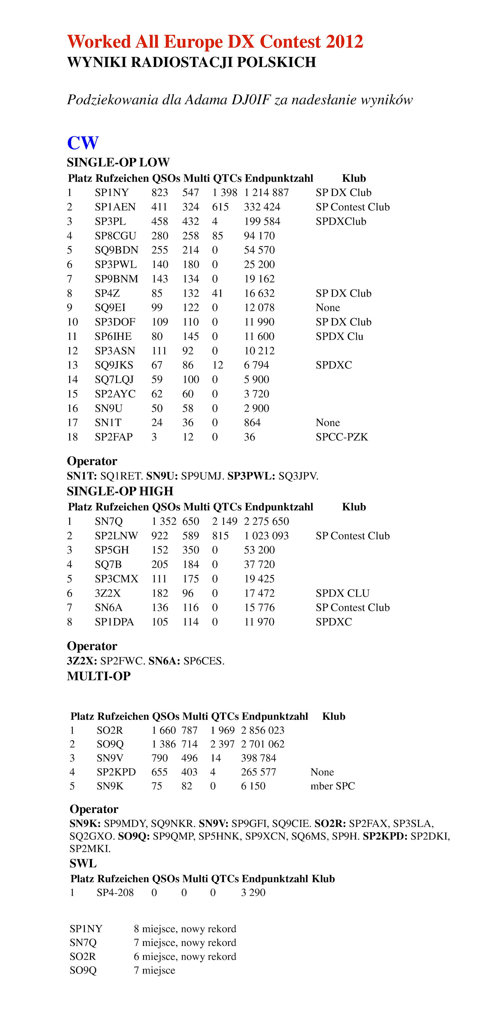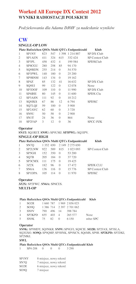 WYNIKI ZAWODÓW Z ROKU 2012