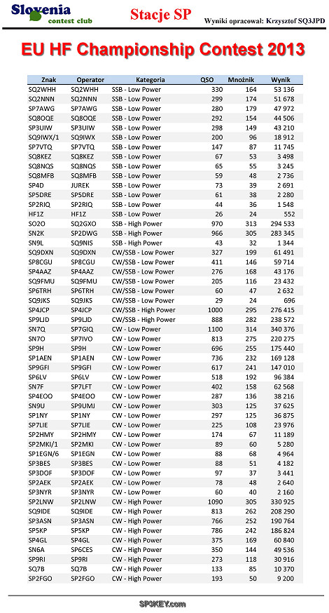 ARRL DX CW Contest | ARRL DX SSB Contest | CQ WW 160m Contest | ARRL RTTYCQ WW WPX Contest SSB | WAE DX CW Contest | WAE DX SSB Contest | SP DX RTTY