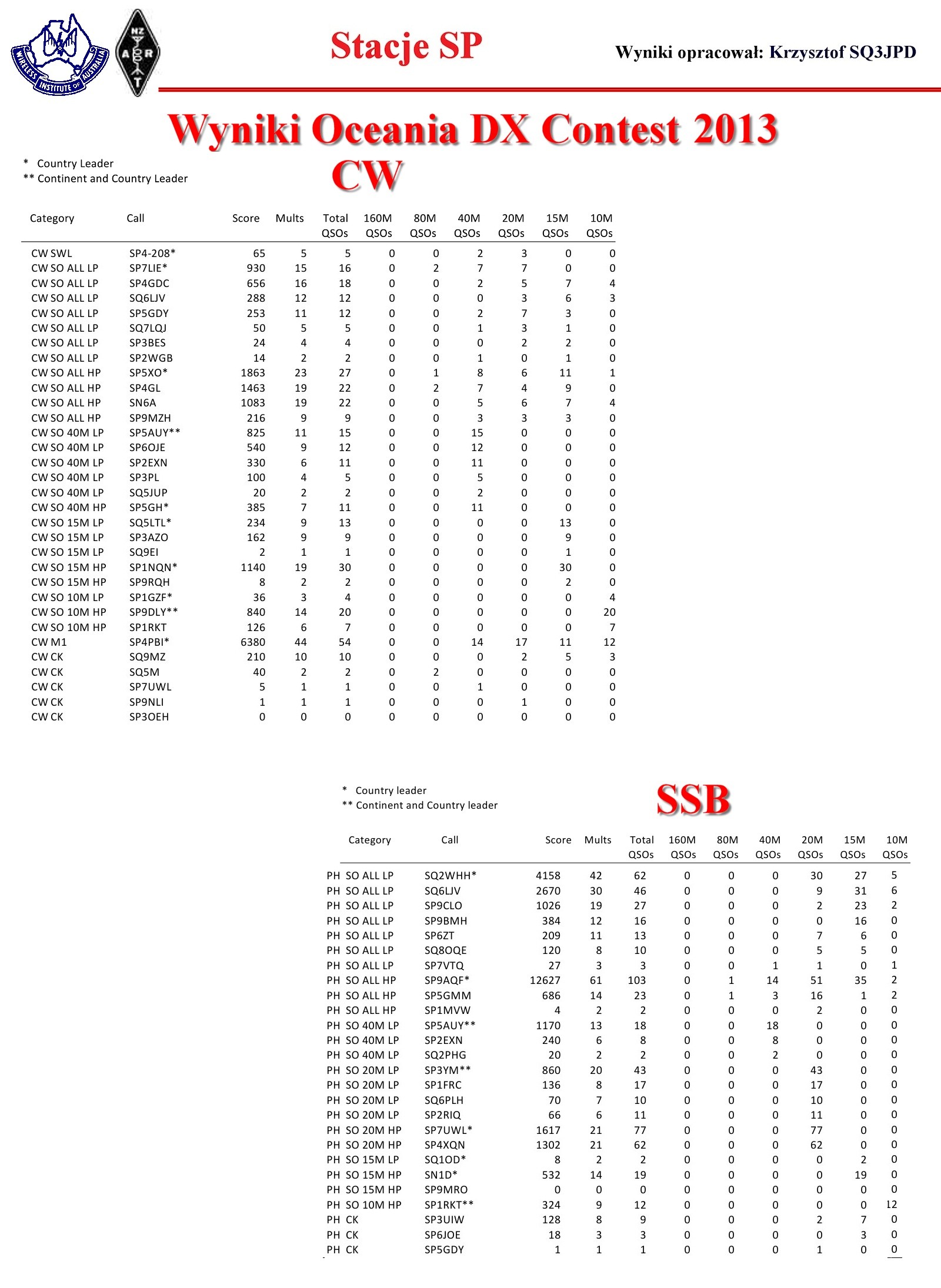 ARRL DX CW Contest | ARRL DX SSB Contest | CQ WW 160m Contest | ARRL RTTYCQ WW WPX Contest SSB | WAE DX CW Contest | WAE DX SSB Contest | SP DX RTTY