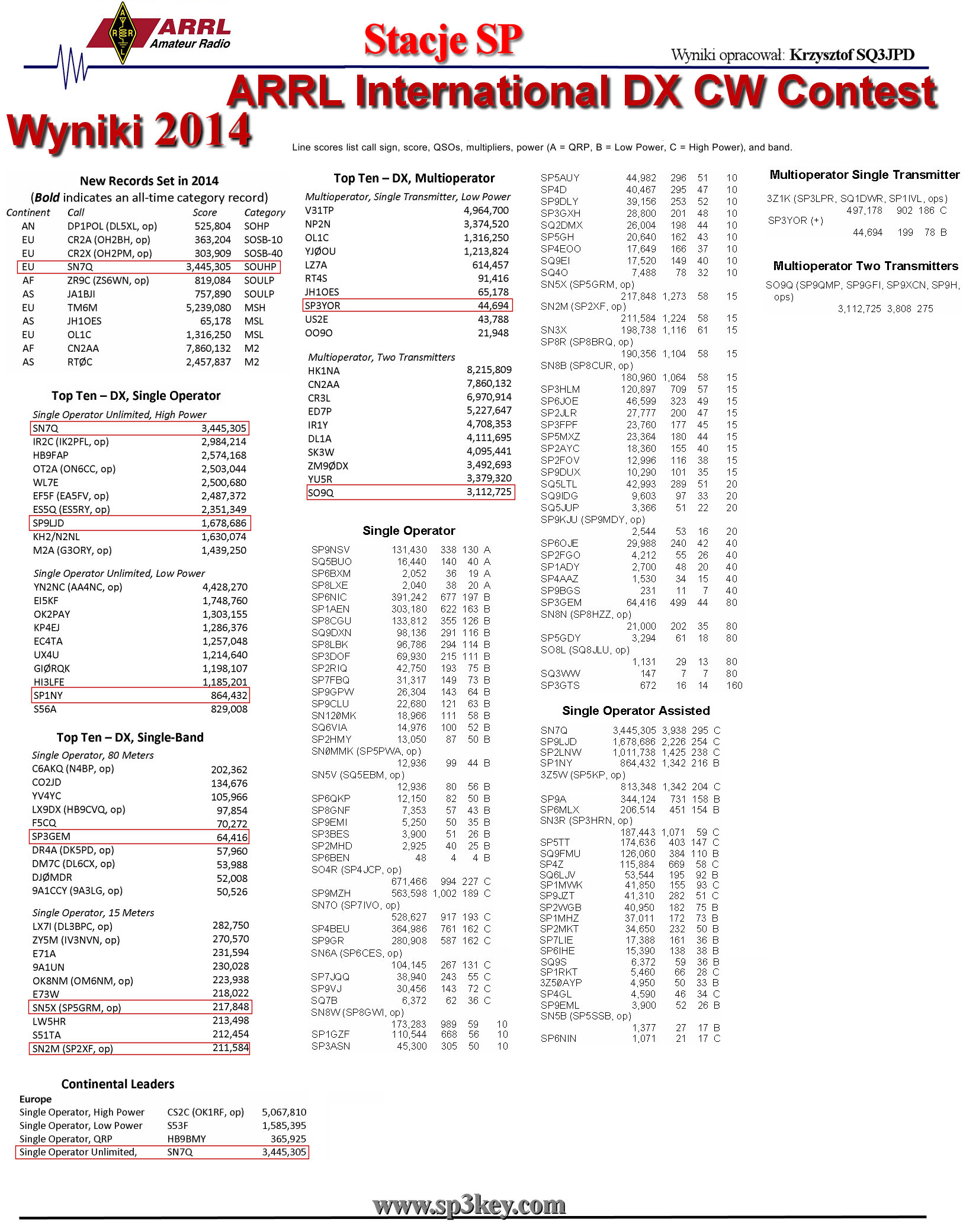 ARRL DX CW | ARRL DX SSB | ARRL RTTY | CQ WW 160m | SP DX RTTYCQ WW WPX SSB | CQ WW WPX CW | Russian DX | WAE DX SSB | ARRL 10 Meter