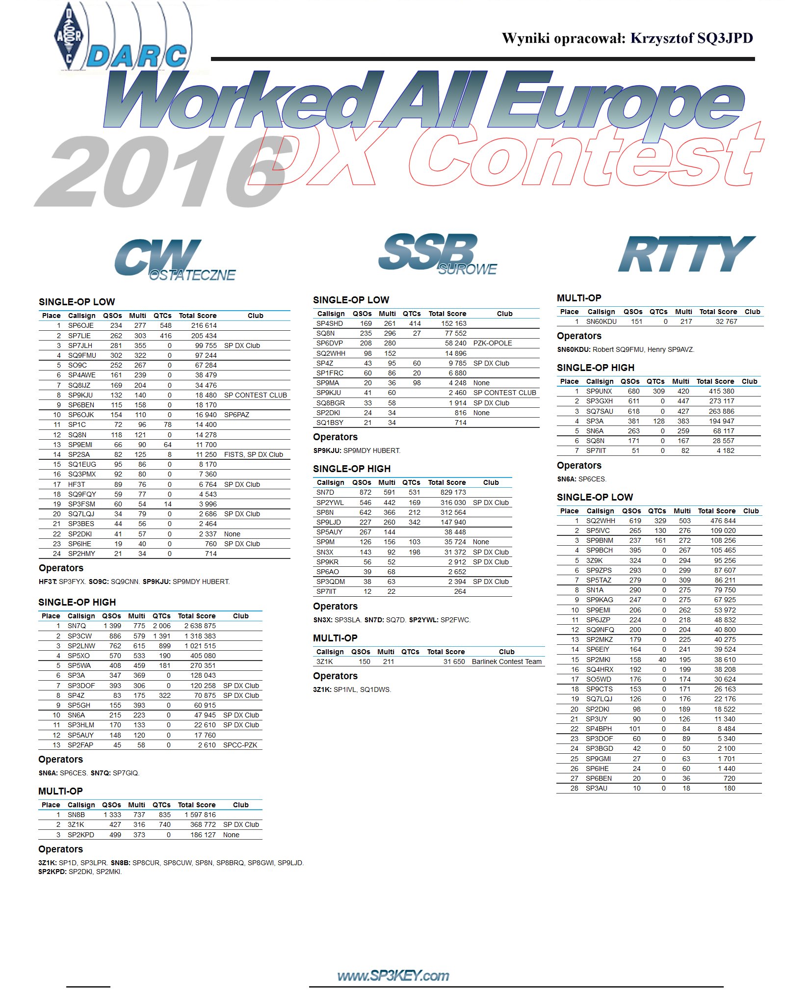 SP DX RTTY | CQ WPX RTTY | IARU HF WC | CQ WW CW | CQ WW SSB